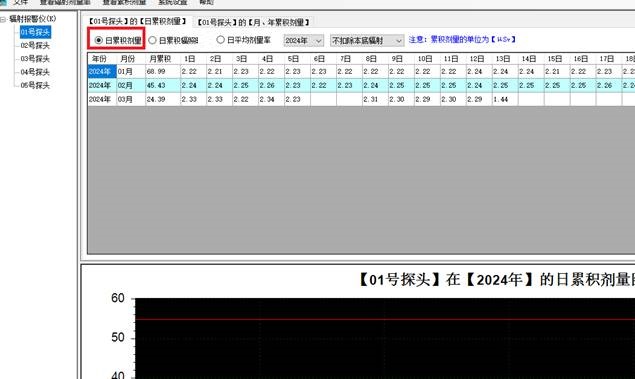 4、測(cè)量數(shù)據(jù):劑量率、日累積劑量、月累積劑量、年累積劑量、總累積劑量、日平均劑量率、月平均劑量率、年平均劑量率、總平均劑量率