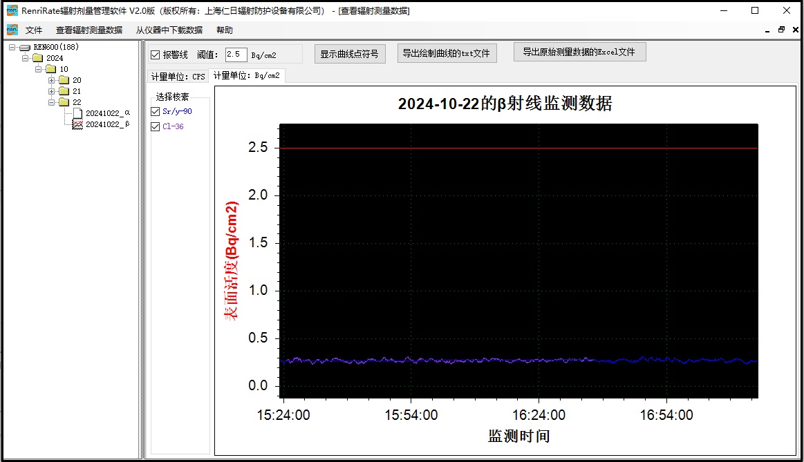 3、顯示單位:cpm、cps 、Bq 、Bq/cm2